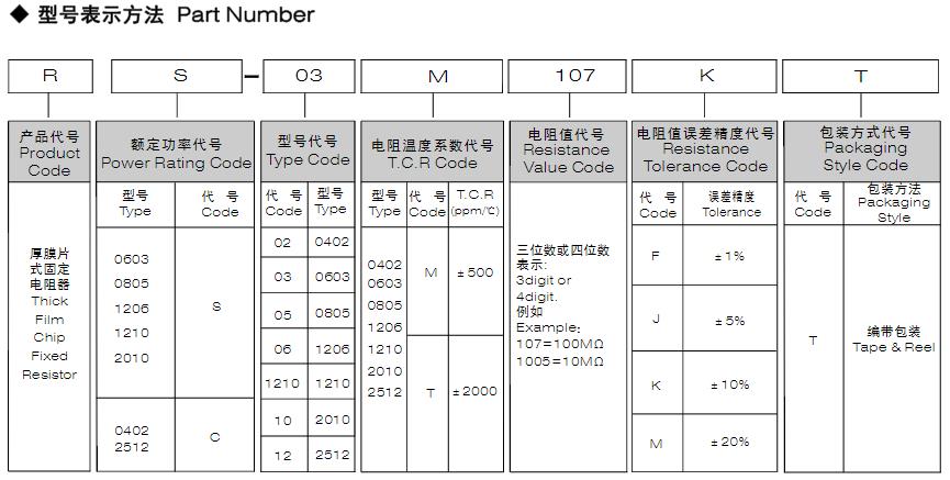 風(fēng)華高科高阻值厚膜片式固定電阻器型號表示方法:
