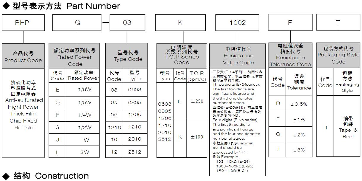風(fēng)華高科抗硫化功率型厚膜片式固定電阻器型號命名規(guī)則: