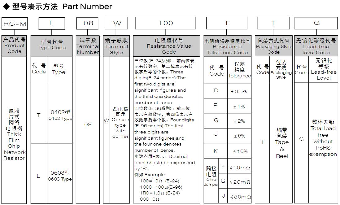 風(fēng)華高科無鉛厚膜片式網(wǎng)絡(luò)電阻器型號(hào)命名規(guī)則: