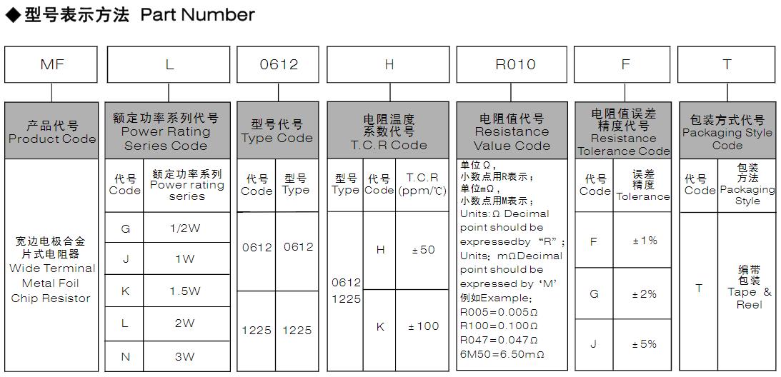 風華高科寬邊電極合金片式電阻器型號命名規(guī)則: