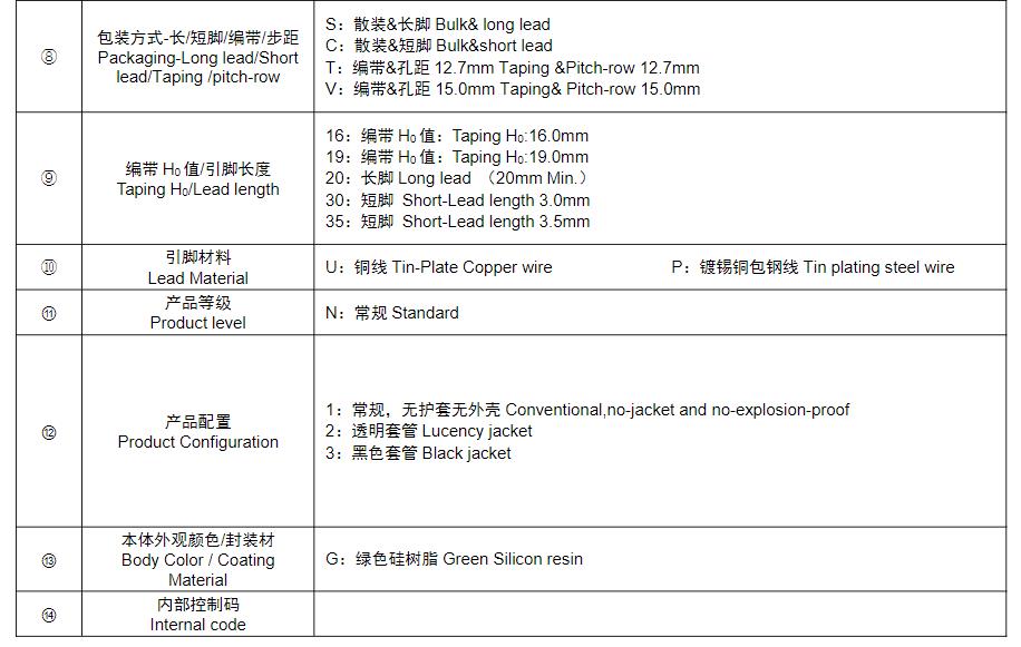 風(fēng)華高科T系列壓敏電阻器型號命名規(guī)則: