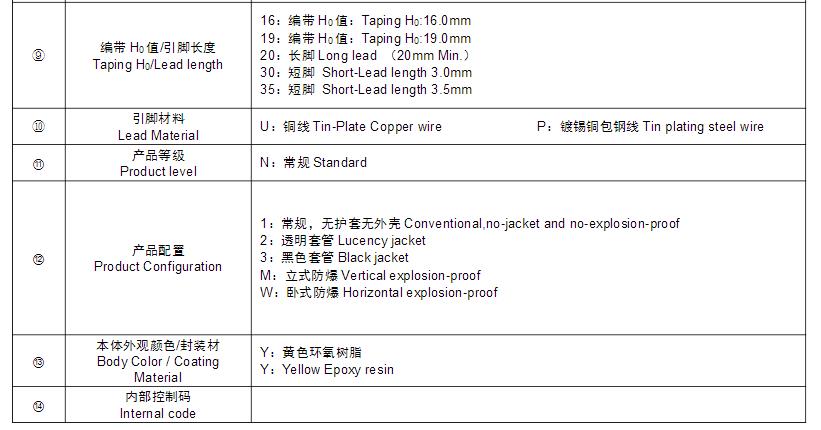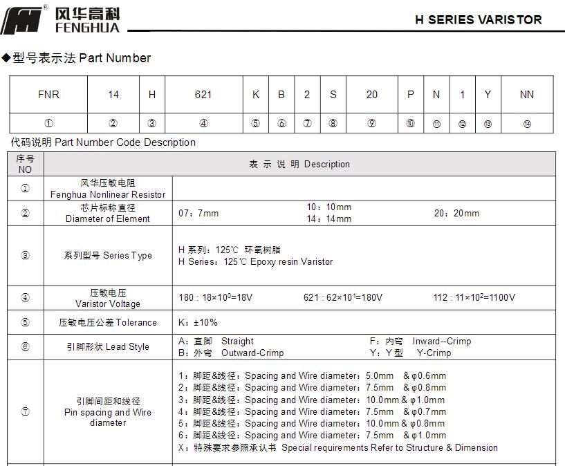 風(fēng)華高科H系列壓敏電阻器型號(hào)命名規(guī)則: