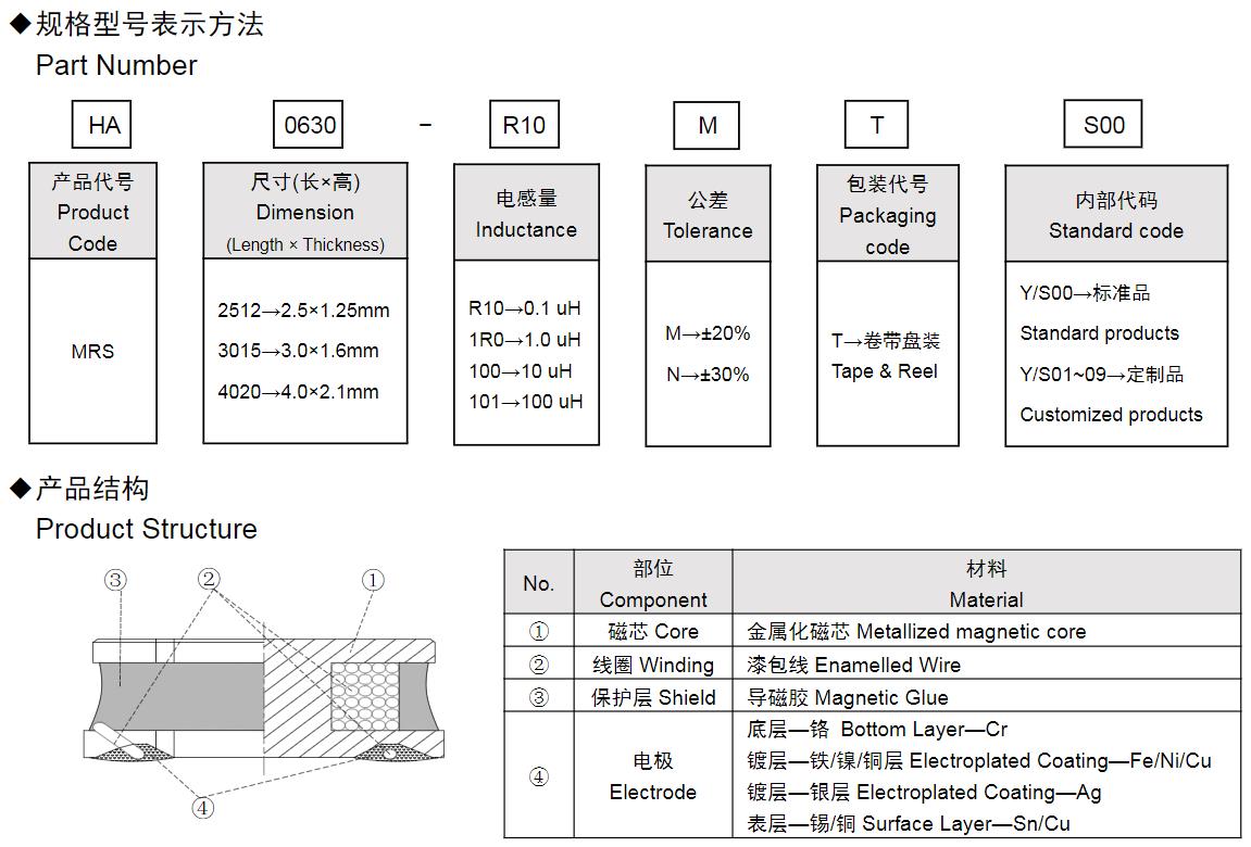 風(fēng)華高科MRS系列功率電感器命名規(guī)則: