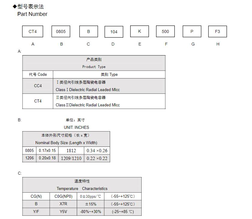 風(fēng)華高科徑向引線多層陶瓷電容型號命名規(guī)則: