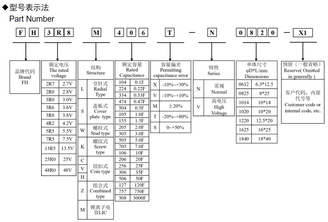 風(fēng)華高科鋰離子超級電容器型號命名規(guī)則: