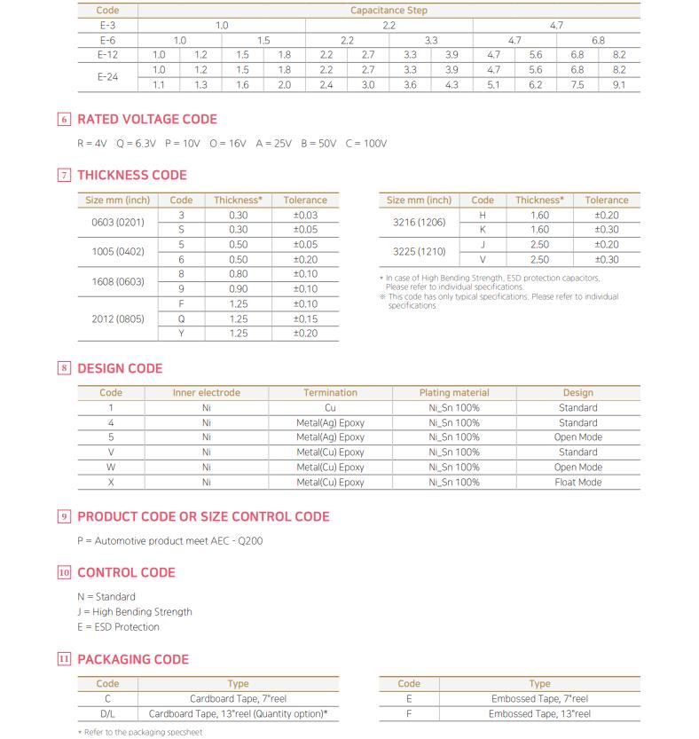 三星貼片車規(guī)電容料號命名規(guī)則對照表