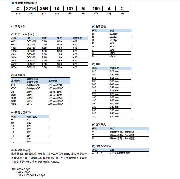 tdk貼片電容命名規(guī)則對照表: