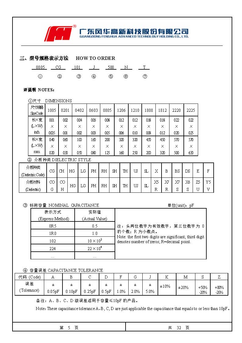 風(fēng)華高科貼片電容命名規(guī)則對照表
