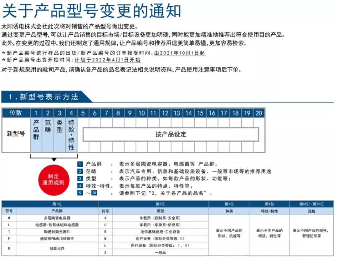 TAIYO YUDEN太陽(yáng)誘電關(guān)于產(chǎn)品型號(hào)變更的通知