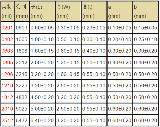 封裝有:0201,0402,0603,0805,1206,1210,1812,2010,2512。