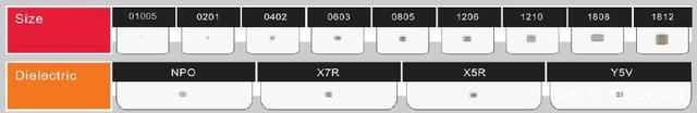 0402規(guī)格和0603規(guī)格的貼片電容,不同品牌之前沒有差異,國巨、村田、三星、華新科、風華高科、TDK品牌電容都是一樣的標準。如下圖是常用貼片電容材質(zhì)及封裝大小。