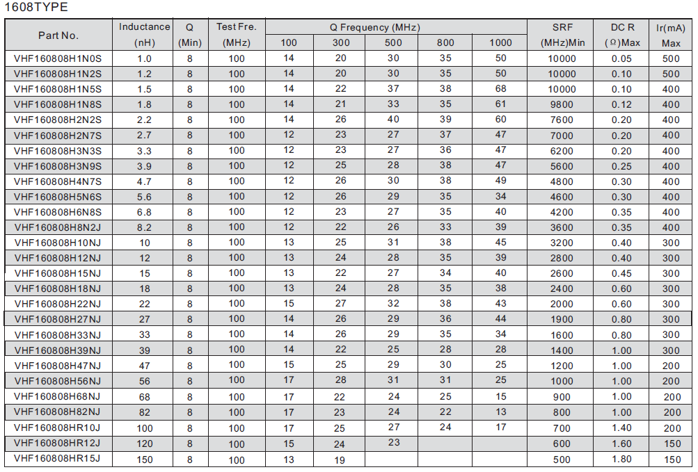 風華高頻電感_風華疊層片式高頻_VHF系列_風華代理商
