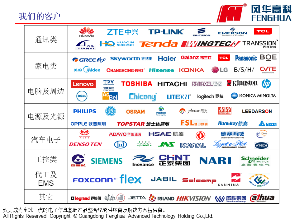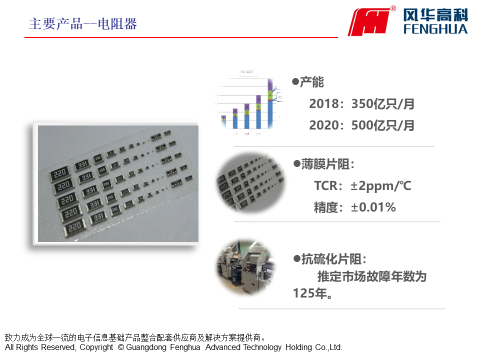 風(fēng)華高科具有完整與成熟的產(chǎn)品鏈,具備為通訊類、消費類、計算機類、汽車電子類、照明電器類等電子整機整合配套供貨的大規(guī)模生產(chǎn)能力。