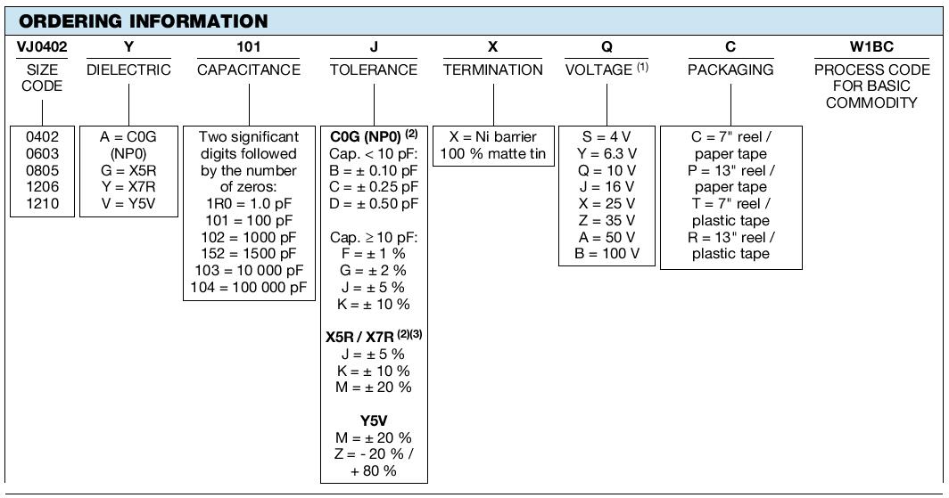 VIIYONG(微容)電容品牌編碼規(guī)則對(duì)照表