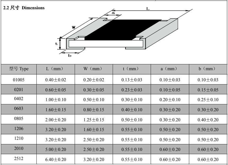 風(fēng)華高科電容材質(zhì)與規(guī)格尺寸對照表